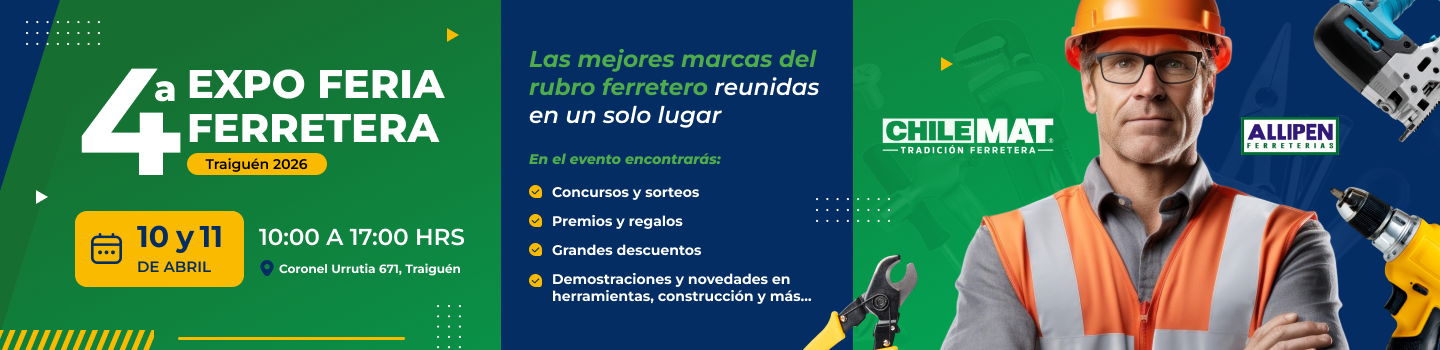 La 4ª Expoferia Ferretera Allipen Traiguén 2026 se realizará este 10 y 11 de abril en la ciudad de Traiguén, reuniendo a más de 40 proveedores y marcas líderes del rubro ferretero, la construcción y el mejoramiento del hogar.