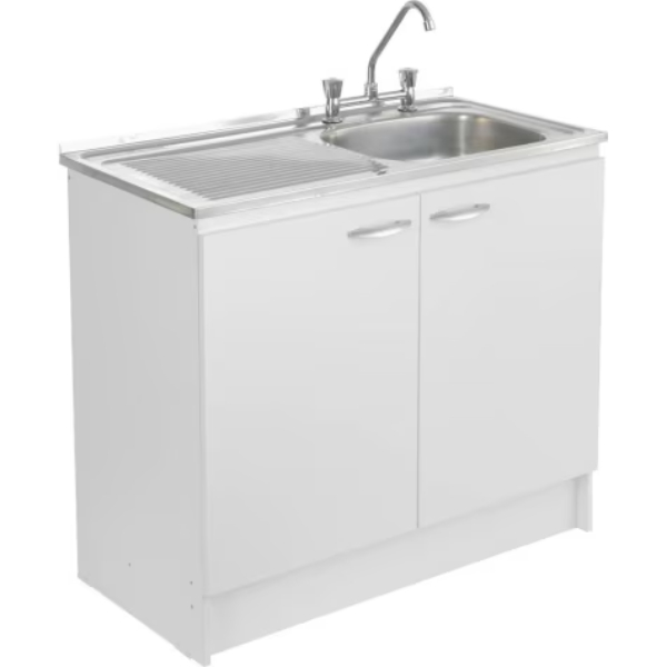 Con el Kit Mueble lavaplatos integrarás a tu hogar una pieza práctica y funcional. Se trata de un producto de la sección baños y cocinas que posee un tamaño compacto, ideal para ambientes que cuenten con poco espacio. Consta de un mueble con dos puertas confeccionado en melamina y un lavaplatos que se encuentra fabricado en acero inoxidable.